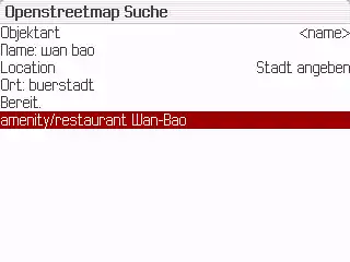 Aosm is combined with a search engine for the german phone book, so phone book entries from the german phone book can be highlighted on the OpenStreetMap. In addition the OpenStreetMap Namefinder is accessible.