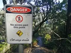 Sanctioned paths are tracks, paths and trails that the landholder has officially designated as being open to the public. These paths are usually indicated by an official track head sign or guidepost, are often maintained to ensure track quality. The landholder may have installed toilets, lighting, and other basic amenities, and the path itself may have constructed with erosion preventative infrastructure, bridges, and so forth.