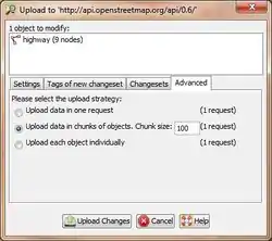 Als je een foutmelding krijgt over synchronisatie die niet met de door JOSM aangereikte methode is op te lossen, gebruik dan niet ‘cancel’ maar ‘upload each object individually’. Bij eventuele conflicten kun je in noodgevallen FILE -> Update selection toepassen. Het is normaal als de upload lang duurt, soms is het erg druk op de OSM server.