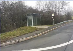 | platform:width | * | Breite des Wartebereiches. Wenn die Plattform als Punkt erfasst wird, wird hier die Breite der schmalsten Stelle angegeben, da narrow an Punkten nicht vergeben werden kann. Wenn die engste Stelle <90 cm ist, wird zusätzlich wheelchair=no gesetzt. | ![]() Bushaltestelle mit Engstelle zum Wartehäuschen |