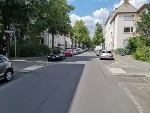 Die  Gehwege (highway=footway + footway=sidewalk) sind untereinander mit baulichen oder logischen  Querungen (highway=footway + footway=crossing) versehen (beachte die oben genannten Hinweise zu Kreuzungen, die mit parkenden Fahrzeugen verstellt sind). Die  Art der Querung kann mit highway=crossing + crossing=* genauer spezifiziert werden – an Nebenstraßen meist crossing=unmarked. Mit  kerb=* kann die Art des Bordsteins (erhöht/abgesenkt) angegeben werden.