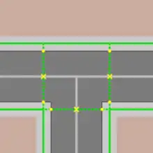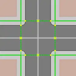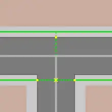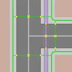 T-Kreuzung mit nur teilweise separat gemappten Gehwegen
