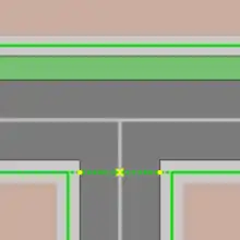 • Füge weitere baulich vorhandene oder logische Verbindungen und Anschlussmöglichkeiten zwischen Straße und straßenbegleitenden Wegen ein – z.B. an sonstigen Querungsmöglichkeiten wie Gehwegvorstreckungen (siehe unten) oder im Bereich gegenüberliegender Einmündungen/T-Kreuzungen – und achte darauf, dass alle Linien miteinander verbunden sind.