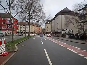 ![]() geteilte mittlere Spur für Rad- und Kfz-Verkehr |