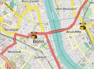 HinweisDiese Seite soll eine Möglichkeit geben die Ansicht von Bonn in den verschiedenen (Themen-)Karte auf schnelle Art und Weise zu genießen. Der Aufbau und die Sortierung kann sich in der Startphase noch stark ändern, Ideen zur Struktur wird gerne entgegen genommen (siehe Reiter Kontakt) Allgemeine KartenDies sind allgemeine Karten ohne einen besonderen Themenschwerpunkt. Sie unterscheiden sich im Kartenbild und in den Dingen, die als Overlay dazugeschaltet werden können.