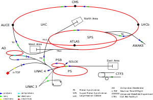 Areas not yet mapped include smaller accelerators such as the many Linear accelerators (Linac) and the Antiproton decelerator (AD), the lesser-known experiments (AWAKE and n-TOF), the east facility, as well as paths leading from/to them.