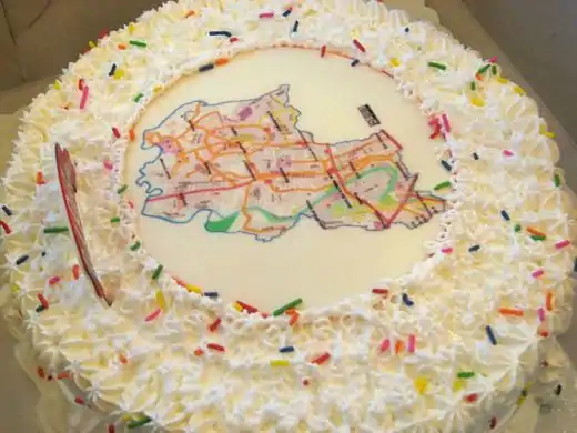 The term "Cake" became associated with OSM as a result of the early mapping parties, specifically Mapchester, the first mapping party in Manchester in May 2006. A "Cake diagram" was produced to help with the mapping effort (top image)