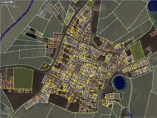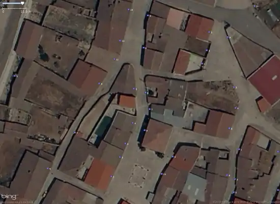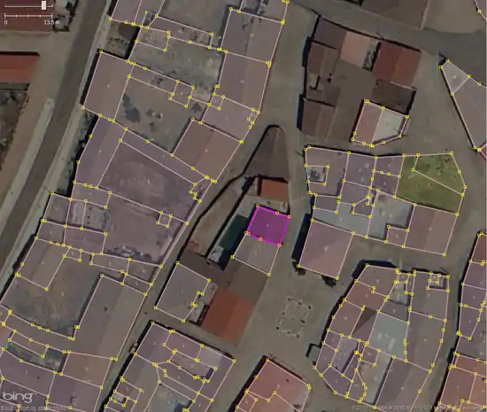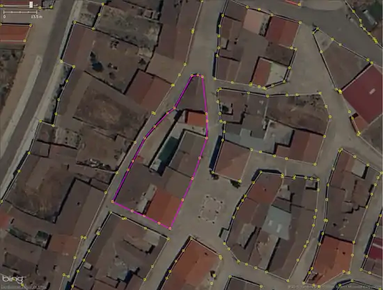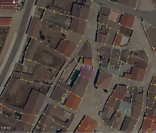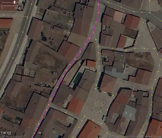 - Corregir geometría: en general las vías de catastro están bastante bien trazadas, pero conviene verificar sobre fotografía aérea, porque siempre hay alguna que se sale de madre. También hay que asegurarse de que todas las vías están conectadas entre si, ya que en algunos municipios quedan nodos duplicados, uno encima de otro pero sin unir (en JOSM parece como si un nodo tuviera sombra).