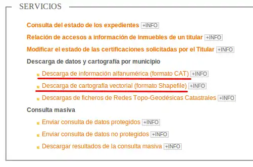 Para descargar los ficheros de catastro es necesario tener DNI-e, obtener el certificado e instalar los drivers del lector y dni-e. También es posible sin DNI-e mediante un certificado electrónico de usuario expedido por la FNMT instalado en el navegador.