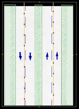 | 3. Restricción con carril lateral (costado izquierdo) en doble sentido / Restriction on side lane (left side) in doble way. | ![]() |