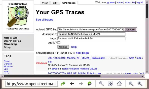 - Start the browser and point it at http://www.openstreetmap.org/traces/mine