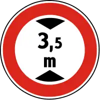 Není zde žádná dopravní značka vyznačující zákonné omezení, ale reálné omezení výšky je nižší než obecný limit dané země. Tato hodnota se hlavně používá u soukromých průjezdů pod budovami, kde dopravní značka není zákonem vyžadována, nebo, přestože vyžadována je, chybí. | |