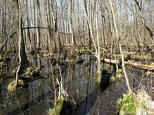 | Močál - oblast lesa zcela nasáklá vodou s hustou vegetací. |