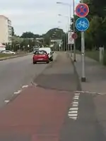 Einbahnstraßen-Radweg neben KFZ-Fahrbahn