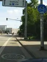 Eine für den Radverkehr und Elektrokleinstfahrzeuge vorgesehene Straße. Anderer Fahrzeugverkehr ist unzulässig, sofern er nicht durch Zusatzzeichen erlaubt wird.
