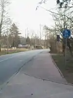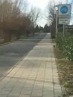 Ein Gehweg baulich durch einen Grünstreifen, Graben, Büsche, usw. von der Fahrbahn abgesetzt und mittels Zeichen 239 und Zusatzzeichen 1022-10 für Radfahrer freigegeben