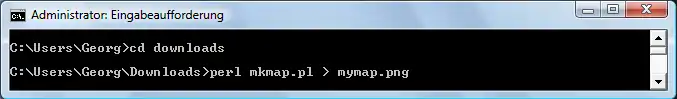Zum Ausführen des Perl-Befehls und damit zur eigentlichen Kartenerstellung muß nun in das "DOS-Fenster" gewechselt werden.