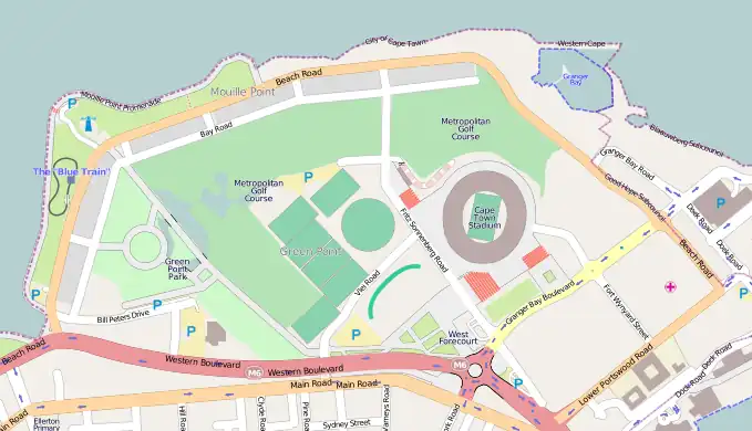 - Deutsch : Das Green Point Gelände in Cape Town, mit dem neuen Green-Point-Stadion, einer der Austragungsorte der Fußball-Weltmeisterschaft 2010. Siehe auch 2010 World Cup mapping project.