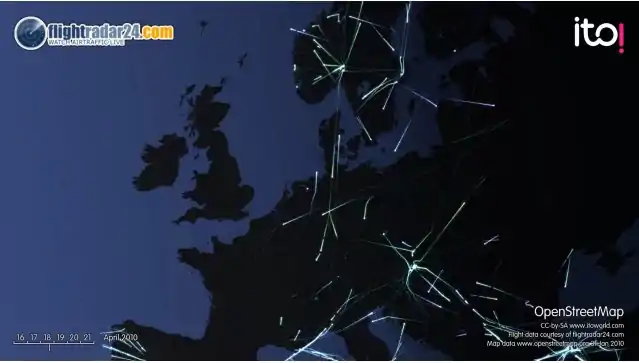 - English : A frame from itoWorld's visualisation of flights after the volcano