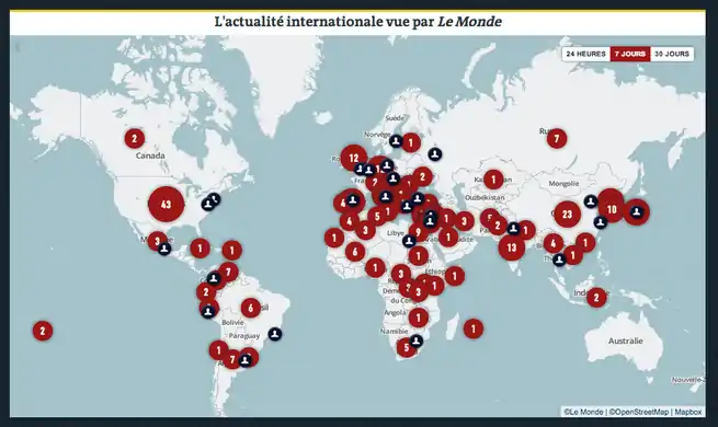 - English : Le Monde, one of the largest French newspapers, relaunched their online paid edition with interactive French maps powered by OpenStreetMap. Read more on the MapBox blog