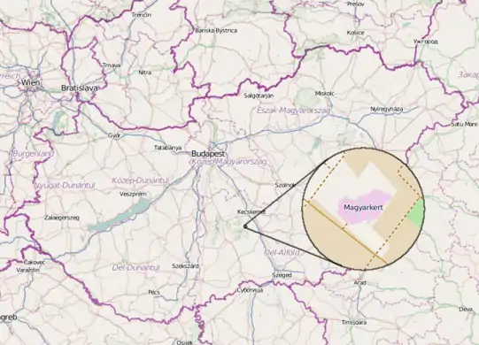 - Deutsch : Magyarkert ("Ungarn-Garten") ist ein Erholungspark in Ungarn, der wie das Land im Maßstab 1:1000 geformt ist. Er enthält Flüsse, Seen und Hügelformen. Im Park geht es vor allem um Umweltschutz, Bildungsprogramme, Sport etc., und natürlich ist er in OpenStreetMap.