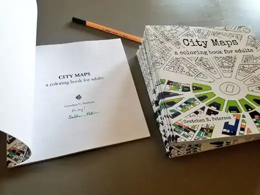 - Deutsch : »City Maps – a coloring book for adults« (Stadtpläne - ein Malbuch für Erwachsene) von Gretchen Peterson ist eine weitere kreative Art, wie man Daten von OpenStreetMap verwenden kann.
