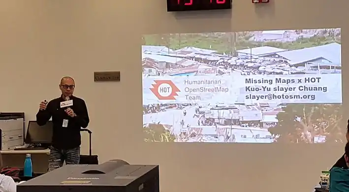 - English : HOT Board Member Kuo-Yu slayer Chuang introducing the Humanitarian OpenStreetMap Team and Missing Maps Project to hundreds of participants in Taipei American School Mapathon. One of the biggest Mapathons ever held in Taiwan.