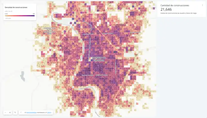 - English : A map (on Carto Builder) showing building density after 2017 Mexico Earthquakes mapping efforts in Juchitán, Oaxaca, created with CARTO.