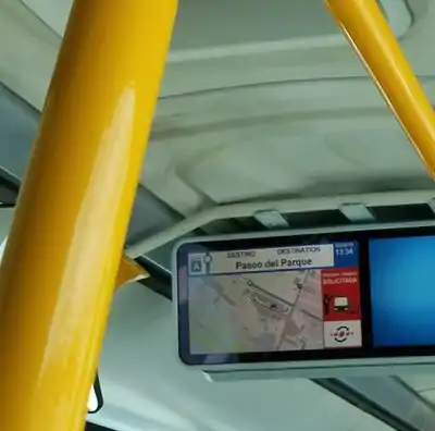 - Deutsch : OpenStreetMap in einem Bus des öffentlichen Nahverkehrs in Málaga, Spanien. Entdeckt von Nick Doiron.