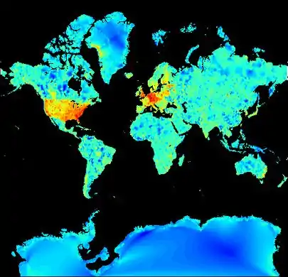 - Deutsch : Karten-Detailreichtum in der Welt (rot = komplexere Karten)