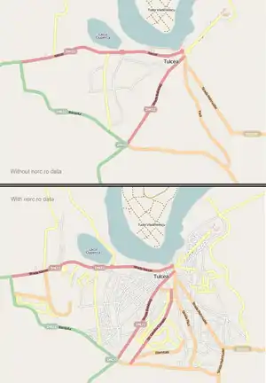 - Deutsch : Basierend auf dem zweiten Schub von Tracks und Panoramen von norc.ro haben die rumänischen Mapper die immernoch andauernde Virtual Mapping Party Romania 2009 organisiert. Im Bild ist der Fortschritt in Tulcea nach ein paar Tagen des Mappens zu sehen.
