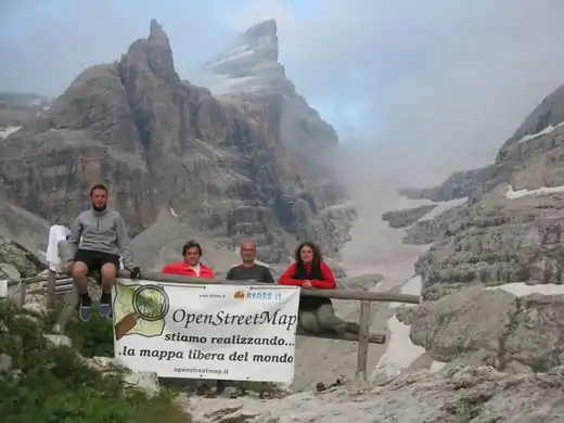 - Deutsch : Viel Spaß und neue Wege während der dreitägigen Dolomiti Mapping Party in den Brentner Dolomiten. Das Foto entstand nahe der Tuckett-Hütte.