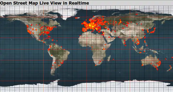 - English : The osmlive service shows worldwide OSM edits in delayed real-time. This image shows the result of a typical 24 hours of activity.