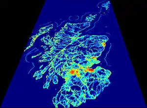 - Deutsch : Knotendichte in Schottland – für die Legende, siehe die dazugehörige Flickr-Seite.