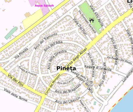 - English : Peculiar spiral street arrangement in the Pineta area of Lignano Sabbiadoro, Italy (map)