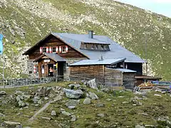 | tourism | alpine_hut | Berghütte. Ein abgelegenes Gebäude in den Bergen, das Unterkunft und Verpflegung bietet. Während der Betriebszeit wird die Hütte bewirtschaftet. | ![]() | |