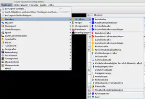![]() Um Daten hinzufügen oder existierende Daten bearbeiten zu können, stellt JOSM eine Reihe von Werkzeugen zur Verfügung. Die nachfolgenden Abschnitte sollen dich Schritt für Schritt mit der Datenbearbeitung vertraut machen. Lade deine Daten, wie unter "Daten laden" besprochen. Wähle am linken Rand des Editors das Werkzeug Punkte setzen (A) Werte zuweisen![]() Als nächstes solltest du aus der Linie eine Straße machen. Da wir bei unserem Beispiel in einem Wohngebiet die Straße (Linie) gezeichnet haben, wählen wir aus dem Menü "Vorlagen" den Eintrag "Ortsstraße". ![]() Im nachfolgenden Dialogfeld tragen wir - falls bekannt - den Namen der Straße ein, und bei Ebenen wählen wir den Wert 0, da es sich in unserem Beispiel nicht um einen Tunnel (-1) oder um eine Brücke (1) handelt. In dem Feld Oberfläche können wir die Beschaffenheit der Straße bestimmen, und zum Schluss kann ein Wert für die Breite der Straße angegeben werden. Nachdem wir alle Eingaben gesetzt haben, schließen wir den Dialog mit OK. Nun kannst du in der Palette rechts unter Eigenschaften/Mitgliedschaften die Werte, die eingetragen wurden, betrachten. ![]() Wähle jetzt das Selektionswerkzeug und klicke in einen freien Bereich der Arbeitsfläche, um die Straße zu deselektieren. Zeichne weitere Straßen ein. Achte dabei darauf, vor dem Zeichnen der nächsten Straße mit dem Selektionswerkzeug ins Leere zu klicken. Deine Straßen könnten jetzt so aussehen: ![]() Als nächstes zeichnest du eine Querstraße, die mit den drei anderen Straßen verbunden ist. Klicke einfach auf den gewünschten Punkt in einer existierenden Straße. Der Editor wird automatisch einen Kreuzungspunkt in die bestehende Straße einfügen. Verfahre mit den beiden anderen Straßenkreuzungen genauso: ![]() Wie du siehst, ist die Straße etwas schief geraten. Wähle das Selektionswerkzeug und klicke ins Leere, um die Straße zu deselektieren. Halte jetzt die Umschalttaste gedrückt und klicke nacheinander die drei Punkte der Querstraße an, um alle drei zu selektieren. Achte auf die Selektionspalette am rechten Bildschirmrand: ![]() Wähle jetzt aus dem Menü "Werkzeuge" den Eintrag "Punkte in einer Gerade anordnen". Der Editor versucht jetzt, alle selektierten Punkte auf einer Linie auszurichten: ![]() Anschließend sieht die Straße viel besser aus als vorher: Vergebe jetzt wie gewohnt den Straßentyp und den Namen. Erstelle weitere Straßen, Fußwege usw., je nachdem, was du vor Ort vorgefunden hast. Sonderpunkte hinzufügenEine Karte besteht nicht nur aus Straßen, sondern auch aus Symbolen für Gegebenheiten vor Ort wie Briefkästen, Supermärkten oder Kirchen. Auch solche Elemente sollten wenn möglich eingetragen werden, um eine möglichst vollständige Karte zu erhalten. ![]() Verwende auch für solche Elemente das Werkzeug "Punkte setzen (A)": Siehe Elemente für Sonderpunkte ![]() Setze mit einem einfachen Klick den Punkt an die gewünschte Stelle: ![]() Wähle aus dem Menü "Vorlagen" den Eintrag "Einrichtungen": ![]() Im nachfolgenden Dialog wählst du beispielsweise das Symbol Telefonhörer für eine Telephonzelle: ![]() Nachfolgend könnte dein Arbeitsbereich in etwa so aussehen: Vor dem Setzen des nächsten Punktes klickst du mit dem Selektionswerkzeug einmal ins Leere, um den momentan selektierten Punkt zu deselektieren. Änderungen rückgängig machen![]() JOSM bietet als leistungsstarker Editor eine unbegrenzte Rückgängig-Funktion. Das bedeutet, dass alle deine Aktivitäten während einer Sitzung in einer Liste vorgehalten werden und somit Schritt für Schritt rückgängig gemacht werden können. Als Kontrollmöglichkeit steht dir rechts die Palette "Befehlsliste" zur Verfügung, in der du alle Aktivitäten zurückverfolgen kannst: ![]() Um ein paar Schritte zurückzugehen, klicke mehrmals auf die Schaltfläche Letzte Aktion zurücknehmen Ebenfalls existiert eine Schaltfläche Letzte Änderung wiederherstellen Daten hochladen![]() Du hast jetzt die wichtigsten Grundwerkzeuge zur Datenerstellung kennengelernt. Falls du in einem Gebiet kartografierst, in dem noch keine Daten vorhanden sind, kannst du deine Daten bereits hochladen. Sind jedoch schon Kartendaten anderer Kartografen vorhanden, solltest du vor dem Hochladen noch einmal den von dir bearbeiteten Kartenausschnitt aktualisieren, indem du auf den grünen Download-Pfeil drückst. JOSM baut nun eine Internetverbindung auf und lädt die derzeit aktuellen Daten des Kartenausschnitts herunter. Die eigene Bearbeitung wird hierdurch nicht beeinflusst oder gar überschrieben, sondern bleibt erhalten. Man stellt jedoch auf diese Weise sicher, dass man nicht die Bearbeitung eines anderen Kartografen zerstört, der möglicherweise gleichzeitig dasselbe Gebiet bearbeitet. Diesen aktualisierten Kartenausschnitt kann man nun guten Gewissens hochladen. Das Hochladen: Wähle dazu die Schaltfläche Alle Änderungen in der aktuellen Datenebene zum OSM-Server hochladen In der Regel wird jetzt der eingebaute Validator aktiviert und findet auch fast immer Probleme, die mehr oder weniger gravierend sind. Dies geschieht z.B., wenn sich zwei Linien überlappen, oder wenn ein neuer Weg nicht benannt wurde. Dabei werden auch Probleme angezeigt, die schon vor Deiner Bearbeitung bestanden haben (deswegen kann es empfehlenswert sein, direkt nach dem Downloaden den Validator zu aktivieren). Einige dieser Meldungen melden ernste Probleme (Error) und sollten, sofern möglich, immer vor dem Hochladen korrigiert werden. Wenn der Error allerdings schon vorher in den Daten war, kann man damit ausnahmsweise warten und im Forum um Hilfe bitten. Warnungen (Warning) sind meist nicht so schwerwiegend und können auch später korrigiert werden - einfach wieder den Validator aktivieren. Insbesondere wird es viele Warnungen geben, die man gar nicht ohne genaue Ortskenntnis korrigieren kann. Wenn Fehler korrigieren, dann bitte nur korrekt. Auf keinen Fall ungewsisse Daten oder Workarounds verwenden, um Fe