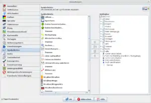 ![]() Auf dem Reiter "Die Elemente auf der Werkzeugleiste anpassen" kannst du deine Werkzeugleiste an deine Arbeitsweise anpassen: Wähle rechts in der Liste jeweils das Werkzeug aus, das du in deine Werkzeugleiste aufnehmen möchtest. Klicke dann auf die Schaltfläche mit dem Pfeil nach links, um das ausgewählte Werkzeug zu deiner Werkzeugleiste hinzuzufügen. Um ein Werkzeug aus der Toolbar zu entfernen, benutzt du den Pfeil nach rechts. Mit den Doppelpfeilen kannst du die Werkzeugleiste leeren bzw. alle verfügbaren Werkzeuge hinzufügen. Du kannst die Anordnung der Werkzeuge in der Werkzeugleiste (linke Liste) ändern, indem du ein Werkzeug markierst und die Schaltflächen mit den Pfeilen auf und ab betätigst. Wähle die Werkzeuge aus, die du voraussichtlich am häufigsten verwendest. Das variiert, je nachdem, welche Art von Daten du einpflegen möchtest. Diese Einstellungen sollten dir einen guten Start ermöglichen. Während deiner späteren Arbeit kannst du natürlich weitere Änderungen vornehmen. Verlasse die Voreinstellungen und starte JOSM neu, falls du dazu aufgefordert wirst. Daten laden![]() Nach dem Neustart sollte JOSM in etwa wie abgebildet aussehen: Um mit der Arbeit von JOSM anzufangen, müssen Daten geladen werden. Grundsätzlich kann dabei unterschieden werden zwischen: