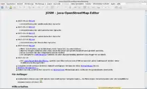 JOSM aktualisierenJOSM erkennt, ob eine neuere Version verfügbar ist, und zeigt beim Programmstart einen Hinweis auf der Informationsseite: