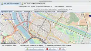 (Hinweis: Bei den Screenshots wurde die Hintergrundfarbe auf #FFFFFF (d.h. weiß) gesetzt. Diese Einstellmöglichkeit findet sich unter "Farben" im Konfigurationsdialog.) OSM-Daten laden![]() OSM-Daten ebenso wie GPX-Dateien lassen sich direkt aus einer Datei laden. In der Regel wird man OSM-Daten aber vom Server beziehen. Dazu wählt man Datei — Daten herunterladen, und es öffnet sich eine Dialogbox. "Datenquellen und Typen" gibt an, welche Daten geladen werden sollen. Meistens will man hier sowohl OpenStreetMap-Daten als auch rohe GPS-Daten von anderen Benutzern wählen. In manchen Fällen kann es aber auch sinnvoll sein, nur eines von beiden auszuwählen. Als neue Ebene laden lädt die Daten in eine eigene Ebene (was das bedeutet später mehr). Mit der Registerkarte (Tab) wählt man aus, wie und wo die Datei bzw. welches Gebiet heruntergeladen werden sollen. Bei Interaktive Karte kann man komfortabel einen Bereich auswählen. Zoomen und Schieben erfolgen mit der Maus; mit gedrückter linker Maustaste kann man einen kleinen rechteckigen Bereich auswählen (einen zu großen Bereich wird der Server verbieten). Die weiteren Punkte in der Registerkarte stammen aus älteren Zeiten, als die interaktive Karte noch nicht vorhanden war, sie können jedoch weiter verwendet werden. Unter Lesezeichen wählt man ein Lesezeichen aus, das man aber erst erstellen muss. Lesezeichen erstellen: Ein Lesezeichen kann gespeichert werden, indem man zunächst den gewünschten Bereich unter dem Tab 'Koordinaten' eingibt (siehe nächsten Punkt) und dann unter 'Bookmarks' nach einem Klick auf 'Add' einen beliebigen Namen dafür vergibt (zum Beispiel den Namen der Stadt/Region). Will man das nächste Mal den Bookmark benutzen, wählt man ihn einfach aus der Liste aus und füllt die Felder unter 'Bounding Box' entsprechend aus. Bei Koordinaten hat man die Wahl, ob man entweder direkt die Koordinaten eingibt (wird man wohl selten auswendig wissen) oder einen Link angibt, der die Koordinaten enthält. Link eintragen (URL von www.openstreetmap.org): Man geht auf eine Seite wie OpenStreetMap.org, sucht sich in der Slippy Map den gewünschten Ausschnitt, kopiert sich den 'Permanent Link' rechts unten und fügt ihn in die entsprechende Editbox per <Strg-V> ein. Bei Bei Ladebereich um bestimmte Orte kannst du die Umgebung des gewünschten Ortes herunterladen. Bei Kachelnummern kannst du Kachelnummern eintragen. JOSM arbeitet 'kachelbasiert', das heißt, die Welt ist in kleine Stücke geteilt. Mit einem Klick auf 'OK' versucht JOSM nun, die Daten herunterzuladen. Das kann je nach Serverauslastung und der Größe der Daten wenige Sekunden, aber auch viel länger dauern. Bevor man sich ans Editieren stürzt, kann man die frisch heruntergeladenen Daten durch den eingebauten Validator checken lassen. Dabei werden in der Regel viele mögliche Probleme angezeigt, die einem sonst beim Hochladen der Daten überraschen würden. Mehr oder schneller OSM-Daten ladenMit der obigen Anleitung bezieht man die Daten stets vom Hauptserver, der je nach Auslastung langsam sein kann oder die Download-Größen beschneidet. Es stehen aber auch Spiegel-Server zur Verfügung, von denen sich mehr Daten und schneller herunterladen lassen. Dies geht bequem mit dem Plugin Mirrored Download. OSM-Dateien speichernHat man die rohen Kartendaten vom OSM-Server heruntergeladen, speichert man sie in einer Datei ab, um sie auch im Offline-Modus verfügbar zu haben. Hierzu wählt man Datei - Speichern unter... aus. Im Feld Dateiname trägt man einen aussagekräftigen Namen für das zu bearbeitende Gebiet ein. Dann wählt man im Feld Dateityp die OSM-Server-Datei (*.osm *.xml) aus und drückt auf Speichern. (Wahlweise lassen sich auch komprimierte Dateiformate auswählen oder einzelne GPS-Spuren als GPX-Datei abspeichern). Jetzt kann man die Internet-Verbindung trennen und offline weiter arbeiten. Speichert man nach dem Editieren die Bearbeitung ab, wird sie nun in dieser Datei abgelegt und lässt sich auch ohne Internet-Verbindung wieder aufrufen. Zum erneuten Öffnen wählt man einfach Datei - Öffnen... und bekommt die abgespeicherte Datei angezeigt. Gerade für das Kartografieren in abgeschiedenen Regionen, in denen man nicht jeden Tag einen Internet-Zugang zur Verfügung hat, ist es sinnvoll, sich diese Anleitung sowie die Seite der Map-Features ebenfalls offline verfügbar zu machen. Grundlegende Bedienung![]() Karte verschiebenBewege den Mauszeiger in das Arbeitsfenster. Danach klickst und hältst du die rechte Maustaste; es müsste ein Fadenkreuz mit Pfeilen Karte vergrößern / verkleinernVerwende das Mausrad, um den sichtbaren Ausschnitt zu vergrößern und zu verkleinern. Stelle sicher, dass der sichtbare Ausschnitt maximal einem Gebiet von ca. einem Quadratkilometer entspricht. Falls dein Track größer ist, vergrößerst du davon einen Abschnitt, den du zuerst bearbeiten möchtest. Deine Arbeitsfläche könnte jetzt so aussehen: Daten laden / vergleichen![]() Jetzt solltest du zuerst beim Server anfragen, ob in diesem Bereich bereits Daten vorliegen. Klicke auf die Schaltfläche Kartendaten vom einem Server deiner Wahl herunterladen JOSM ermittelt anhand deiner GPS-Spur automatisch den Bereich, der heruntergeladen werden soll. Schalte die Option "OpenStreetMap-Daten" ein und klicke anschließend auf die Schaltfläche "OK", um deine erste Anfrage am Server zu starten. Falls am Server gerade Wartungsarbeiten durchgeführt werden oder gerade sehr viele Kartografen Daten abrufen, kann es sein, dass deine Anfrage nicht bearbeitet werden kann. Dies kommt selten, aber dennoch vor. Versuche es in diesem Fall später nochmal. Nach dem Laden der Daten sollte deine Arbeitsfläche etwa dem abgebildeten Beispiel ähneln: Daten selektieren/verschieben![]() Du arbeitest jetzt mit Daten, die im Arbeitsspeicher deines Rechners liegen. Wenn du Daten änderst, werden diese noch nicht in der Projektdatenbank gespeichert. Das kannst du dir für deine ersten Schritt
