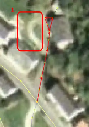 ![]() Abbildung 104: Manchmal gibt es aber auch einfach spitze Winkel in den OSM-Daten, die es in der Realität so nicht gibt |