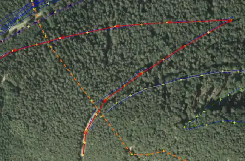 | Feld- bzw. Waldwege (highway=track) sollten immer mit einem detaillierten Tag über die Beschaffenheit des Weges (tracktype=*) versehen werden (grade1 bis grade5). Der tracktype-Tag wird von den Renderern berücksichtigt und macht eine Karte so ausdrucksvoller | |