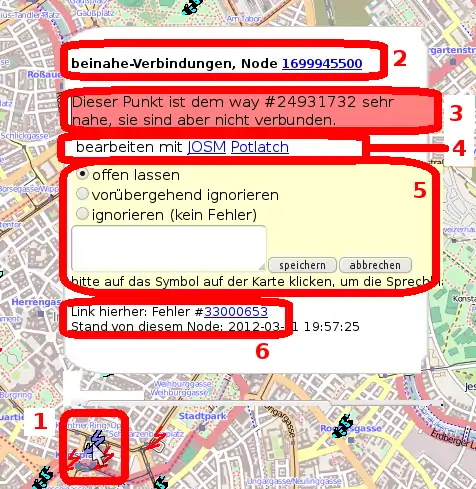 - (7) Wenn ihr diesen Link als Lesezeichen abspeichert, wird euch jedes Mal wieder der von euch individuell gewählte Kartenausschnitt (6) mit den individuell gewählten Fehlerarten (1) angezeigt.