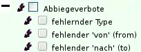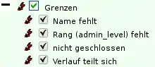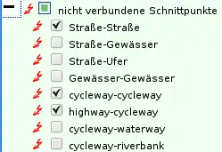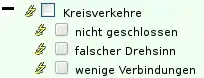 - (2) Manche Fehlerarten sind weiter differenziert. Durch einen Klick auf das + werden euch deshalb weitere Optionen angeboten. Im Beispiel dargestellt ist die weitere Differenzierung der Fehlerart Kreisverkehre. Dort könnt ihr auswählen welche genaue Fehlerart ihr angezeigt haben wollt (nicht geschlossen, falscher Drehsinn, wenige Verbindungen).