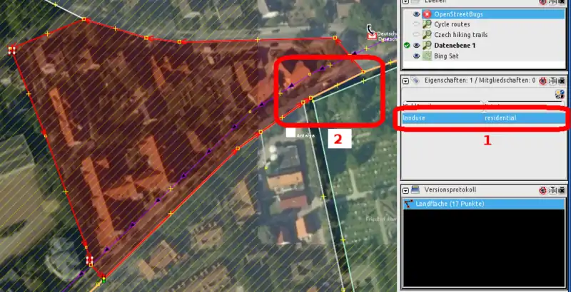 - Satellitenbild einblenden (englisch): josm.openstreetmap.de/wiki/Help/Menu/Imagery