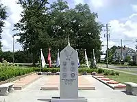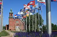 | flag:type=military | Flagge einer Streitmacht oder Einheit, oft in der Nähe einer Militäreinrichtung oder eines Kriegsdenkmals zu finden | ![]() |