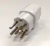 NEMA 14-30 2P+N+E, 208 V or 240 V AC, 30 A. L-shaped neutral blade. Commonly offered in the USA. | ||||