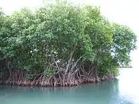 Das Ökosystem Mangrove wird von Wäldern salztoleranter Mangrovenbäume im Gezeitenbereich tropischer Küsten mit Wassertemperaturen über 20 °C gebildet. | ![]() |