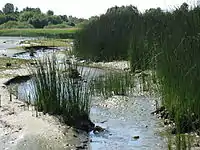 Röhricht ist eine Pflanzengesellschaft aus Schilf und anderen Pflanzen, die ein Dickicht an flachen Ufern von stehenden oder langsam fließenden Gewässern bilden. | ![]() |