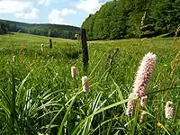 Feuchtwiesen sind von Gräsern, Binsen, Seggen und anderen krautigen Pflanzen gekennzeichnete, gehölzfreie halbnatürliche Biotope, deren Böden in oberen Horizonten vom Grundwasser beeinflusst oder zeitweise überschwemmt sind. Sie liegen im Bereich von Flusstälern, an Seen oder in Senken. | ![]() |